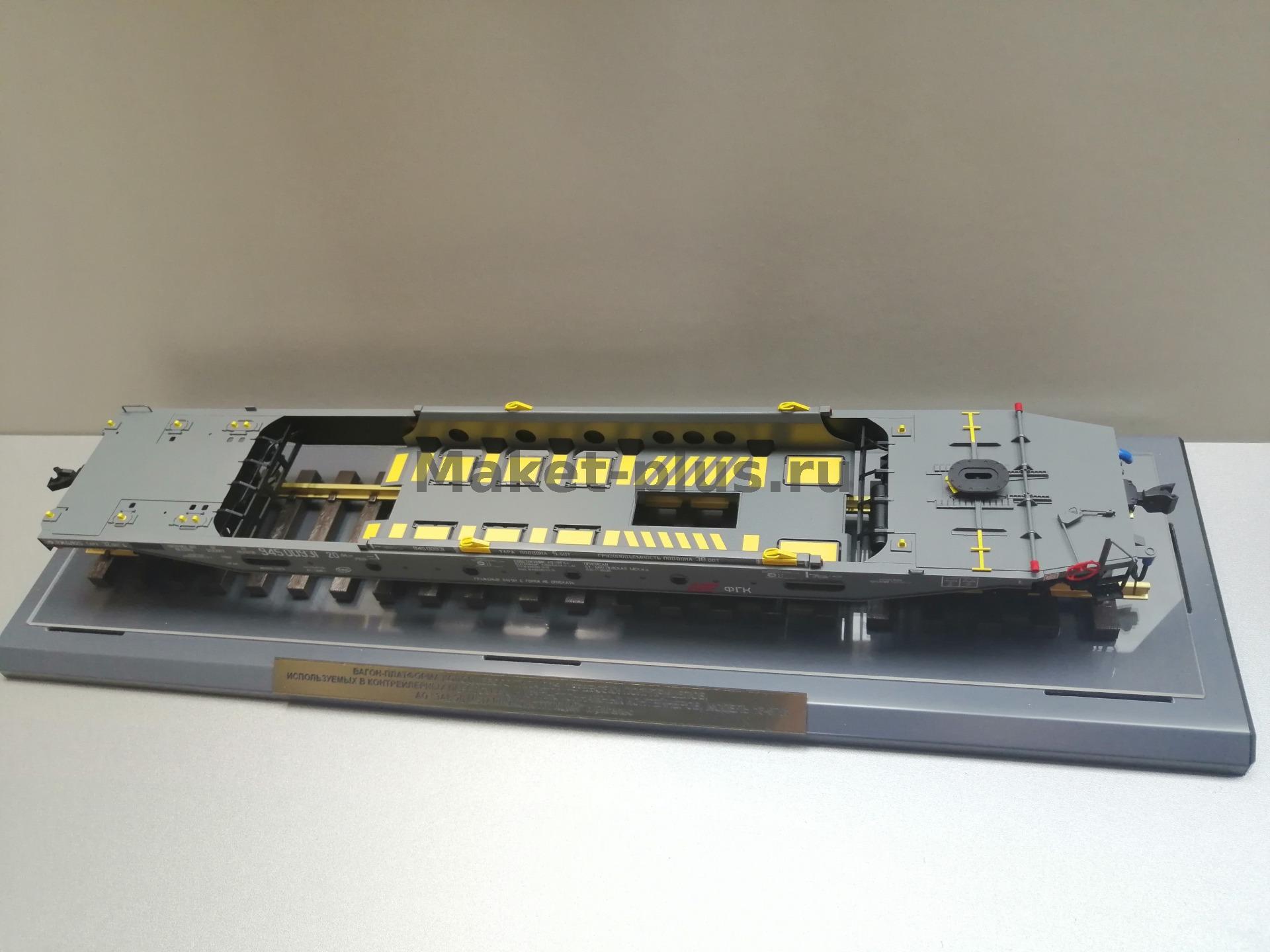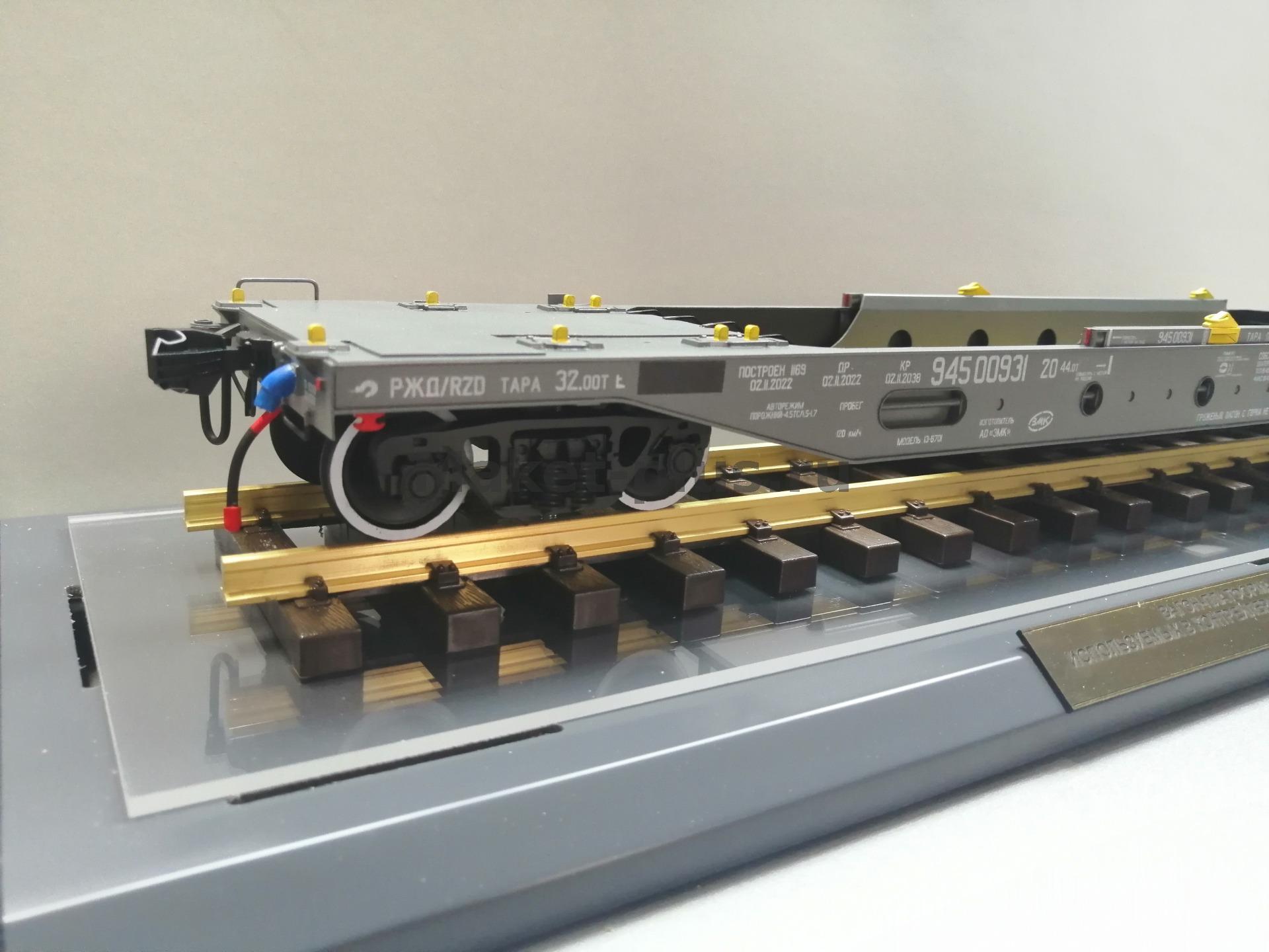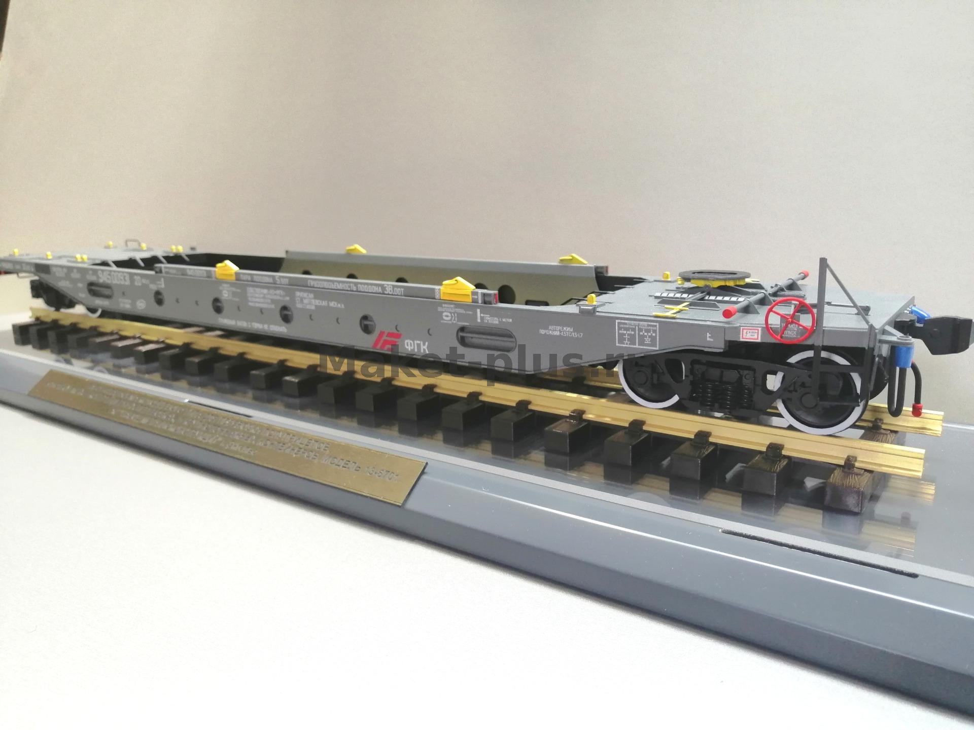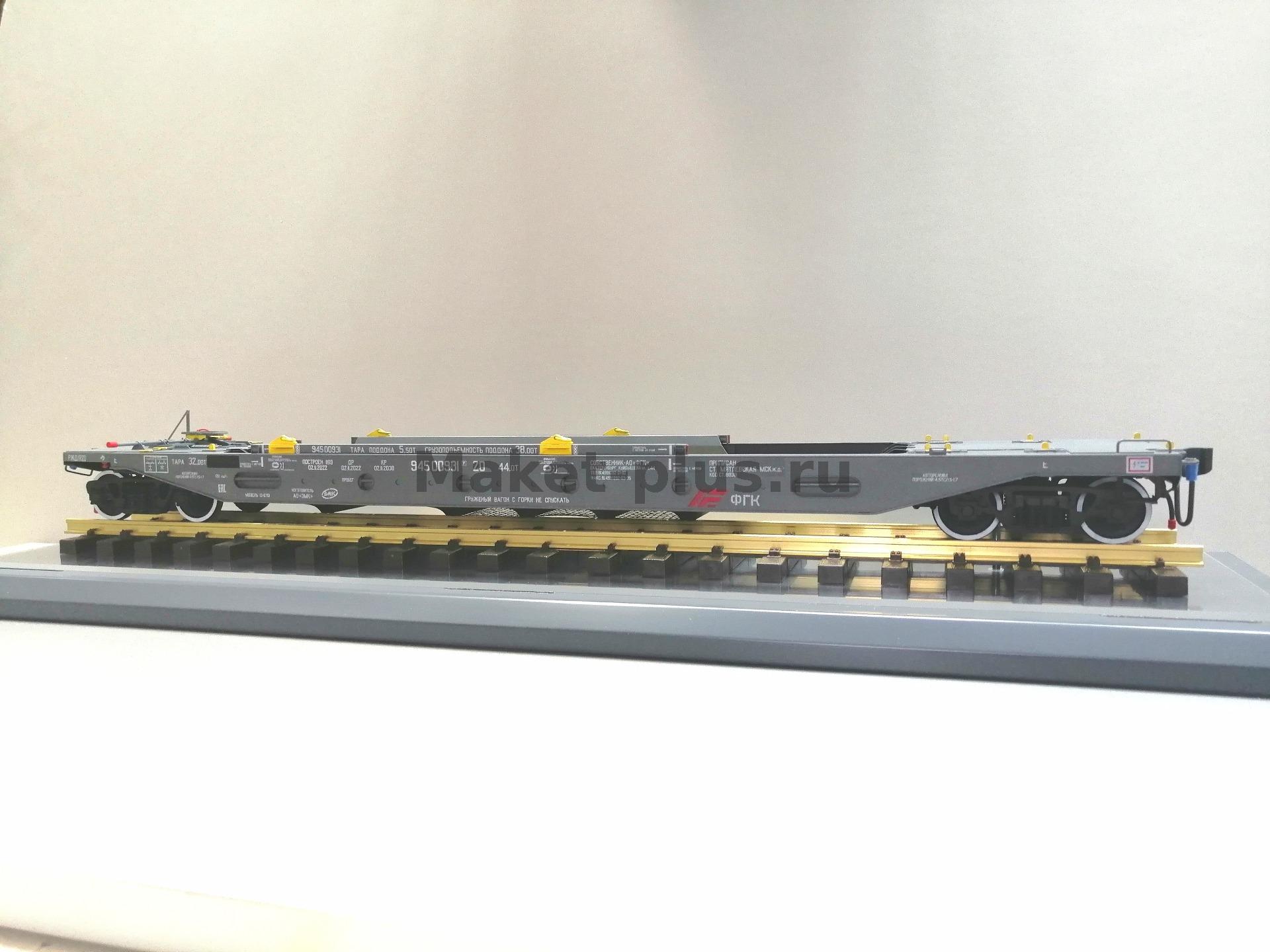 Вагон-платформа колодцевого типа для перевозки полуприцепов используемых в контейнерных перевозках модель 13-6701 производства АО"ЗМК" масштаб 1:32