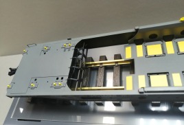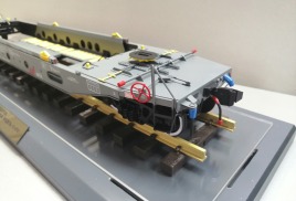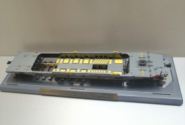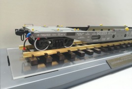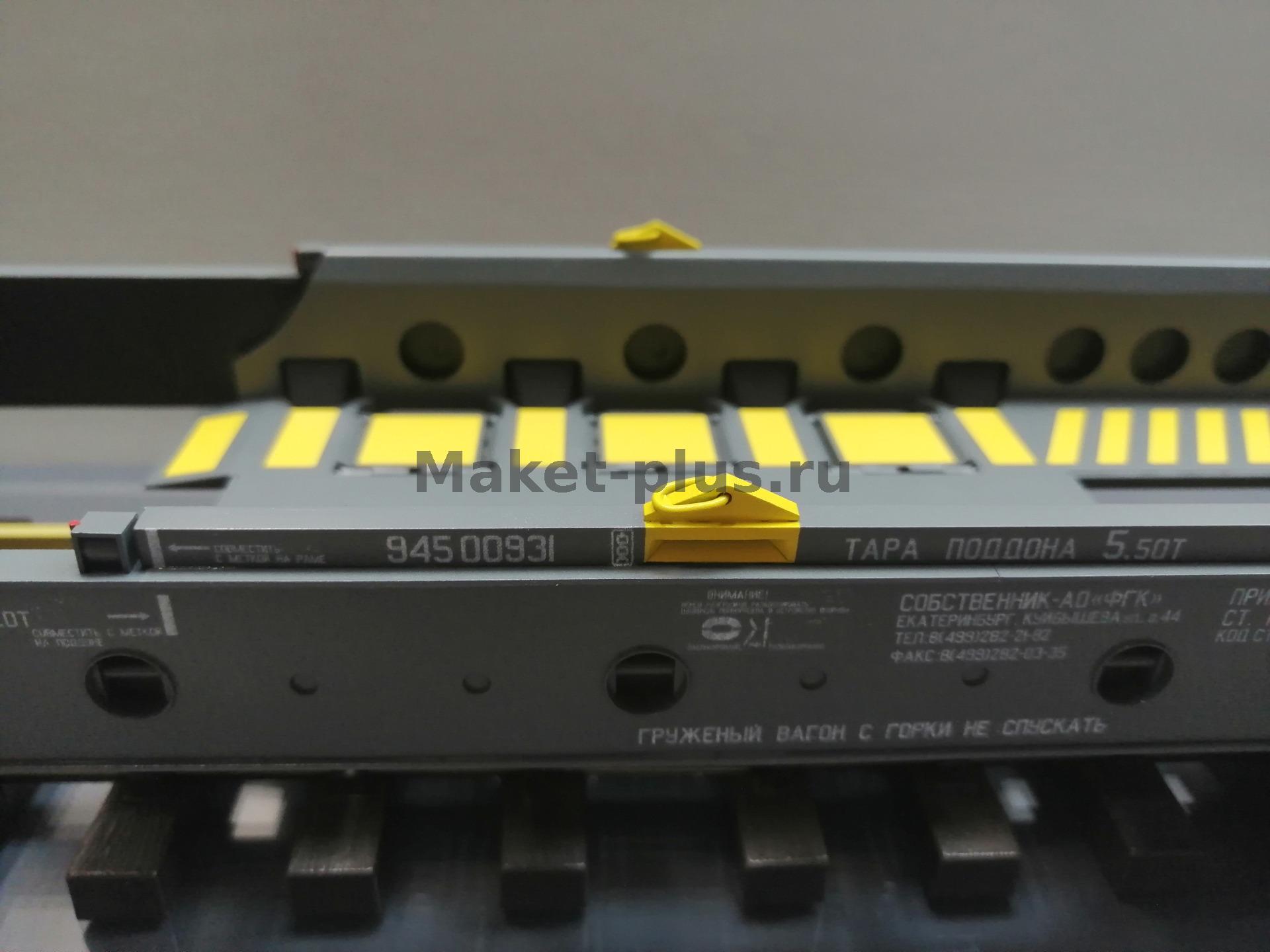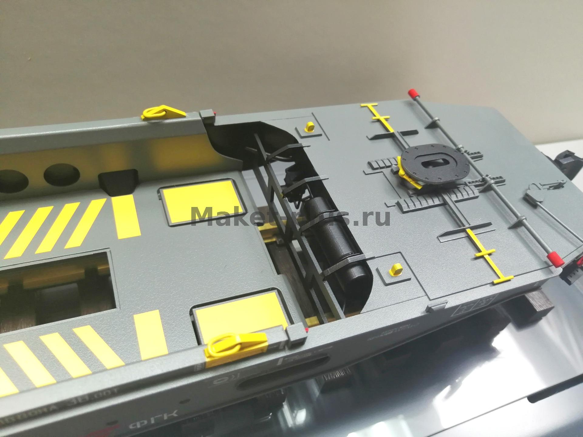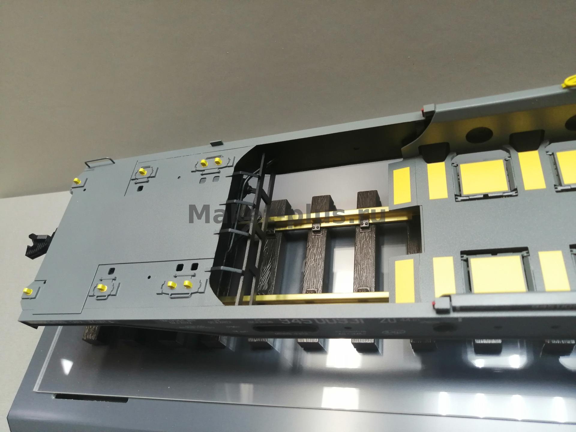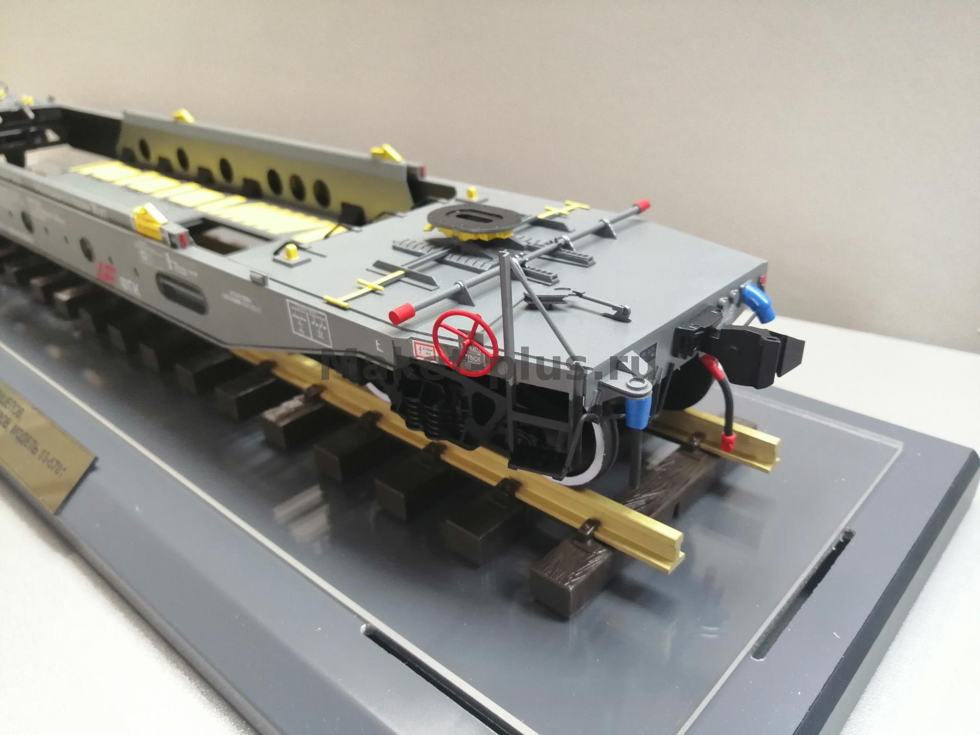 Вагон-платформа колодцевого типа для перевозки полуприцепов используемых в контейнерных перевозках модель 13-6701 производства АО"ЗМК" масштаб 1:32